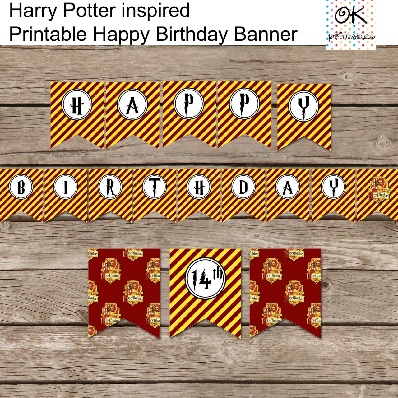 Harry Potter Inspired Printable Birthday Banner Happy Etsy