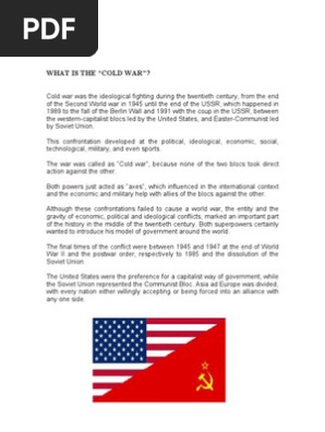 Cold war between usa and ussr pdf. North atlantic treaty organization nato by 1949 the cold war between the united states and the union of soviet socialist republics ussr was underway. Each possessed weapons of mass destruction and was. Soviet leaders feared and distrusted the united states which was the only country with the atomic bomb and which had used it. The foundations of the cold war were broader than just the ideological struggle between capitalism and communism.