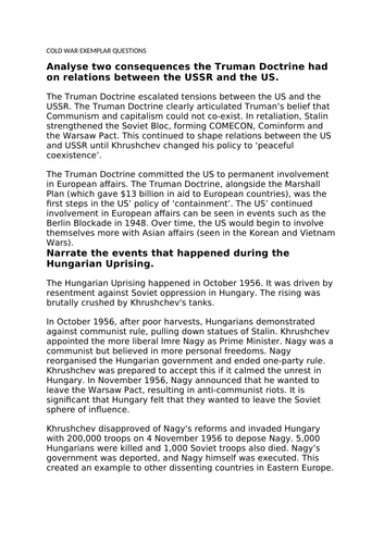 Cold War Essay Questions I Gcse