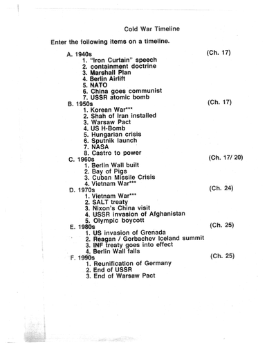 Cold War Timeline Assignment Handout Teacher Key Rubric Etc