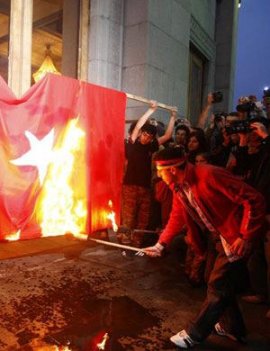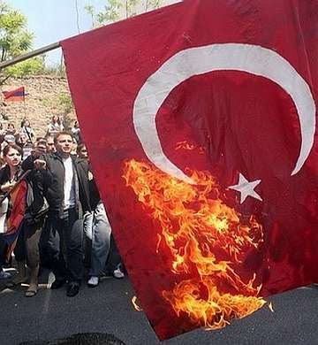 Ali belhadj ex dirigeant du fis brule le drapeau francais. Les loups gris fascistes en iran ont brule le drapeau armenien.
