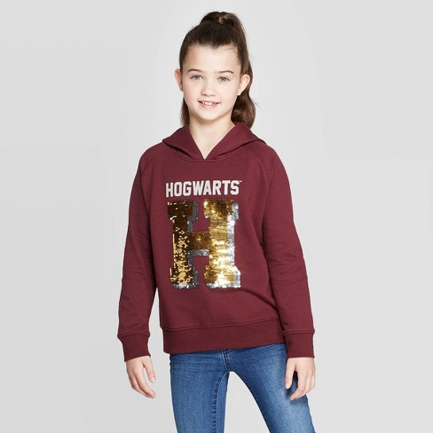 Girls Harry Potter Hogwarts Flip Sequin Hoodie Burgundy S Target