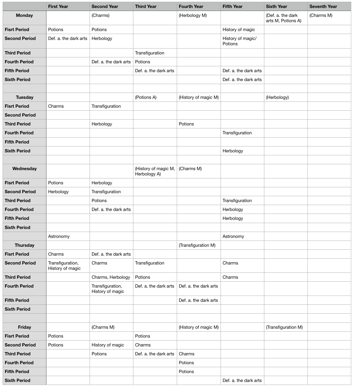 Attempt To Recreate Hogwarts Class Schedule Fandom