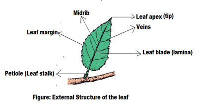 Leaf blade leaf stalk. The slender stalk by which a leaf is attached to the stem. It contains a prominent midrib at the center of the leaf blade which is the main vein. From this midrib arise branches called veins. Its generally broad and flat.