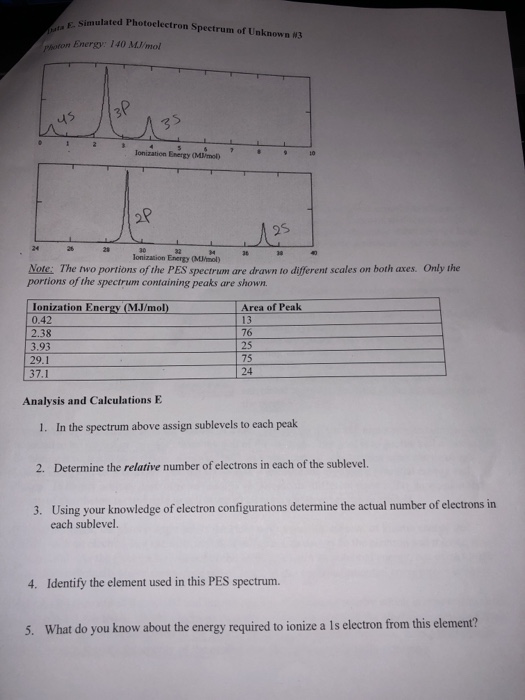 The analysis of electron energies for an atom via this principle is called photoelectron emission spectroscopy pes. Below is the pes of sulfur and a table of successive ionization energies. Below is the pes of sulfur and a table of successive ionization energies. Depending on the source of ionization energy pes can be divided accordingly into ultraviolet photoelectron spectroscopy ups and x ray photoelectron spectroscopy xps.