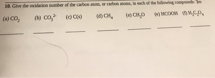 Solved 10 Give The Oxidation Number Of The Carbon Atom Chegg Com