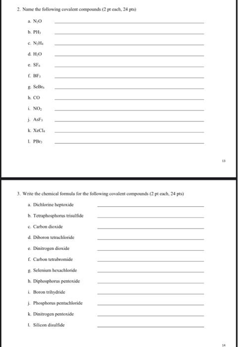 Solved 2 Name The Following Covalent Compounds 2 Pt Cac Chegg Com