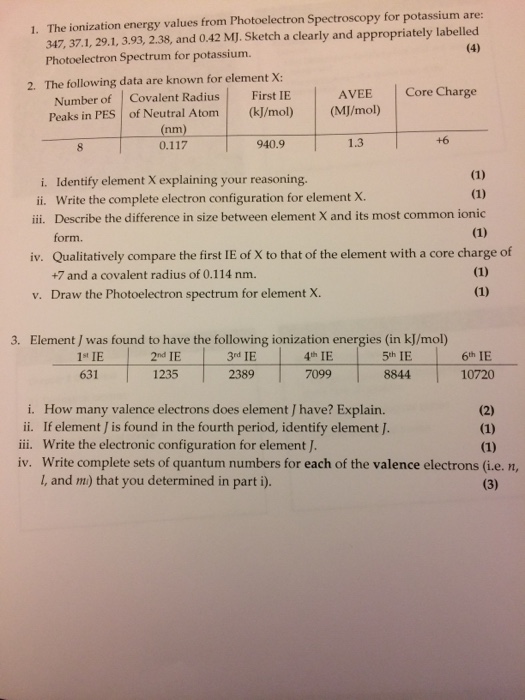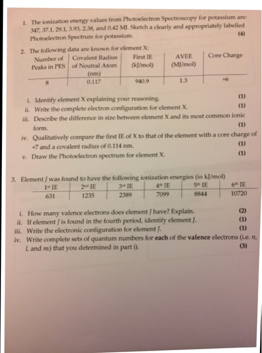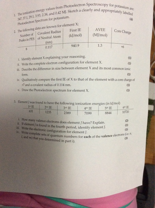 Solved The Ionization Energy Values From Photoelectron Sp Chegg Com