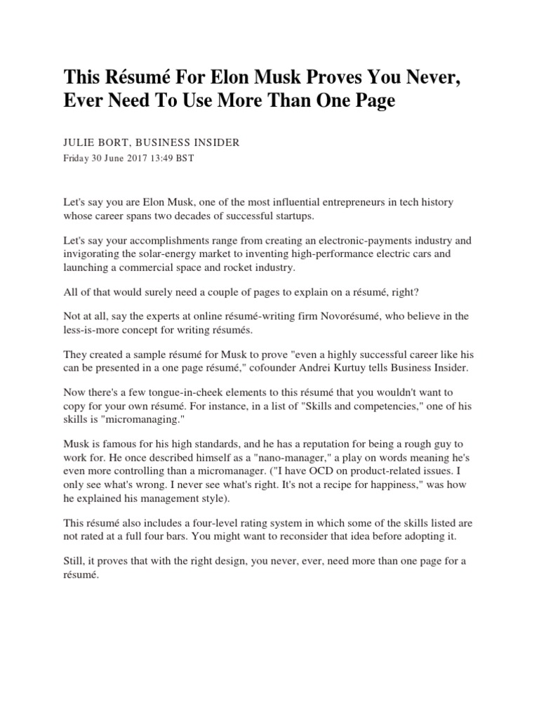 Elon Musk S Resume Proof Nobody Needs More Than One Page