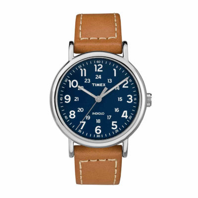 Men S Timex Weekender Brown Leather Strap Watch Tw2p86800