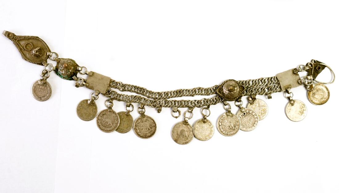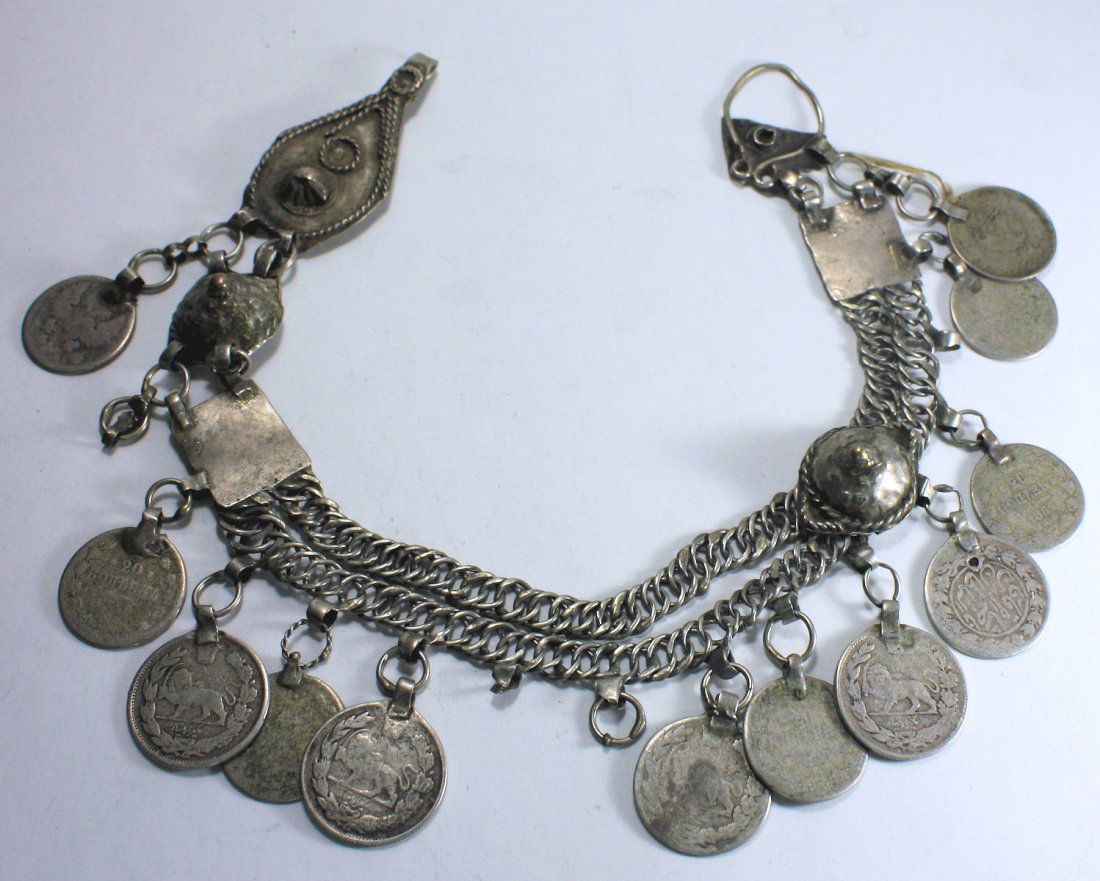 Antique Turkmenistan Silver Coin Bracelet Tribal Jewelry