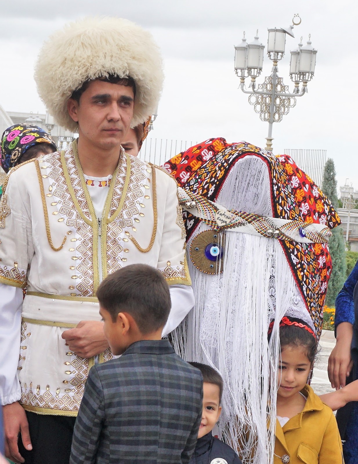A Turkmenistan Wedding The Traditional Bridal Gown And Veil Traveling With The Professor