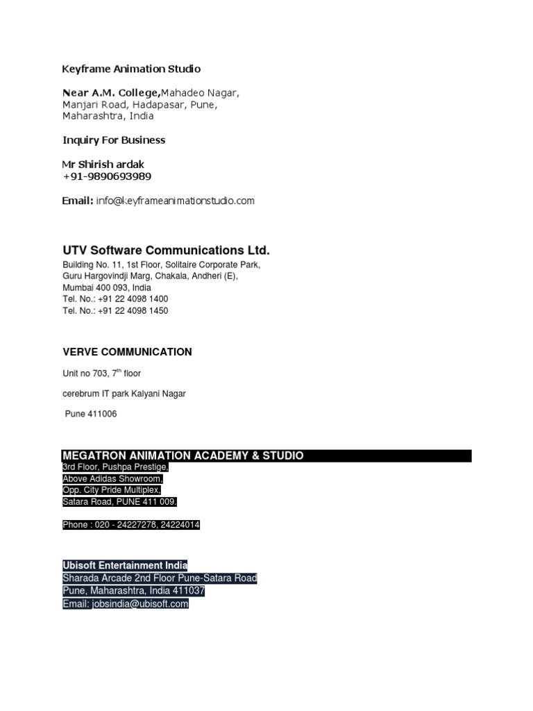 Ubisoft Entertainment India Pvt Ltd Level 6 B 3 Kumar Cerebrum Kalyaninagar 411 006 Pune Pune